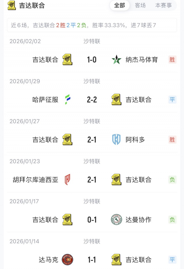 2月7日讯 沙特联第21轮,利雅得胜利对阵吉达联合,赛前首发公布。C罗缺席了上轮对阵利亚德体育的比赛,本场他继续缺战。